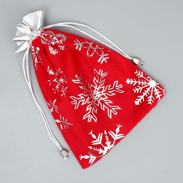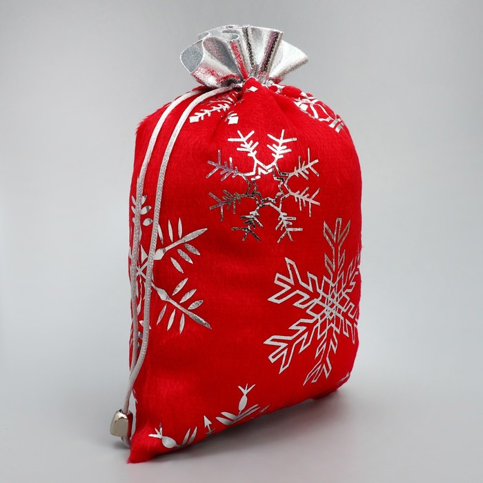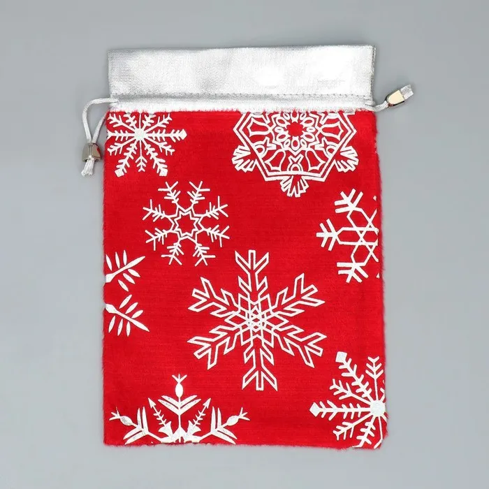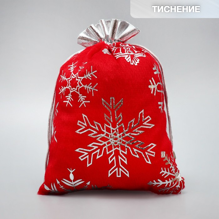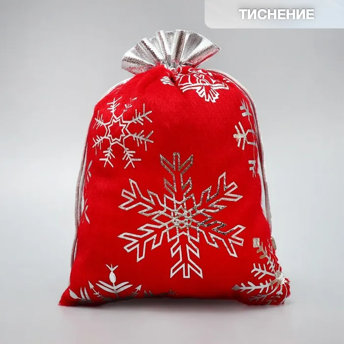 Мешочек подарочный плюш «Мешок Деда Мороза», снежинки, тиснение, 16 х 24 см +/- 1.5 см — Характеристики