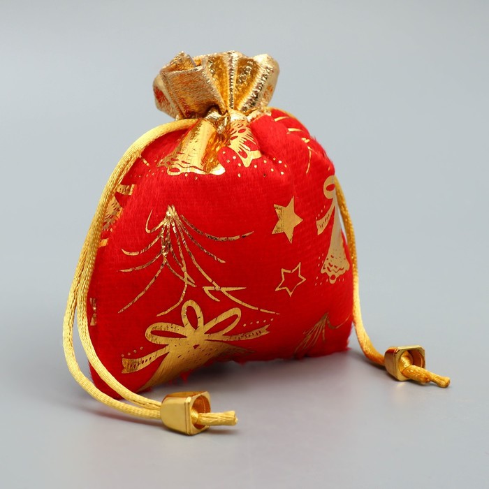 Мешочек подарочный плюш «Новогодние салюты», колокольчики, тиснение, 10 х 12 см +/- 1.5 см — Характеристики