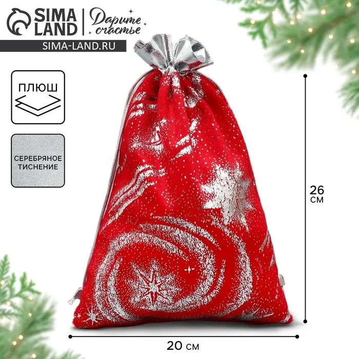 Мешочек подарочный плюш «Новый год пришел», тиснение, 20 х 30 см +/- 1.5 см — Характеристики
