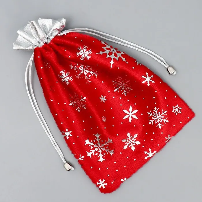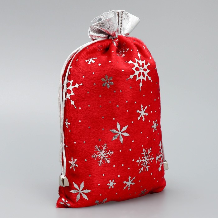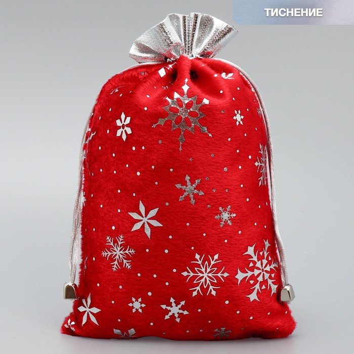 Мешочек подарочный плюш «Спешу поздравить», снежинки, тиснение, 16 х 24 см +/- 1.5 см — Характеристики