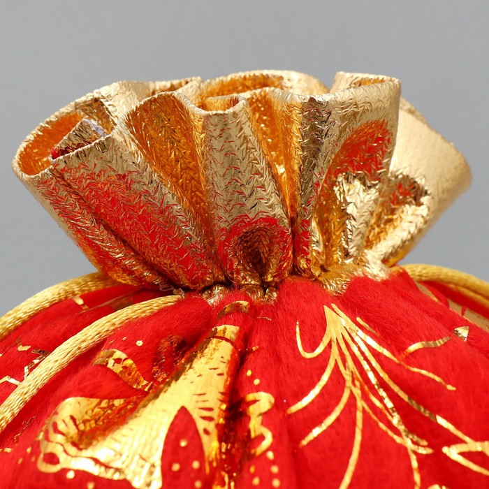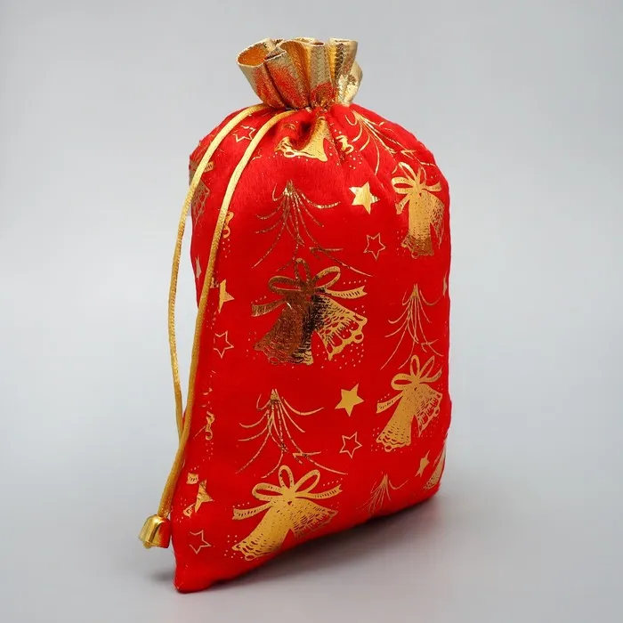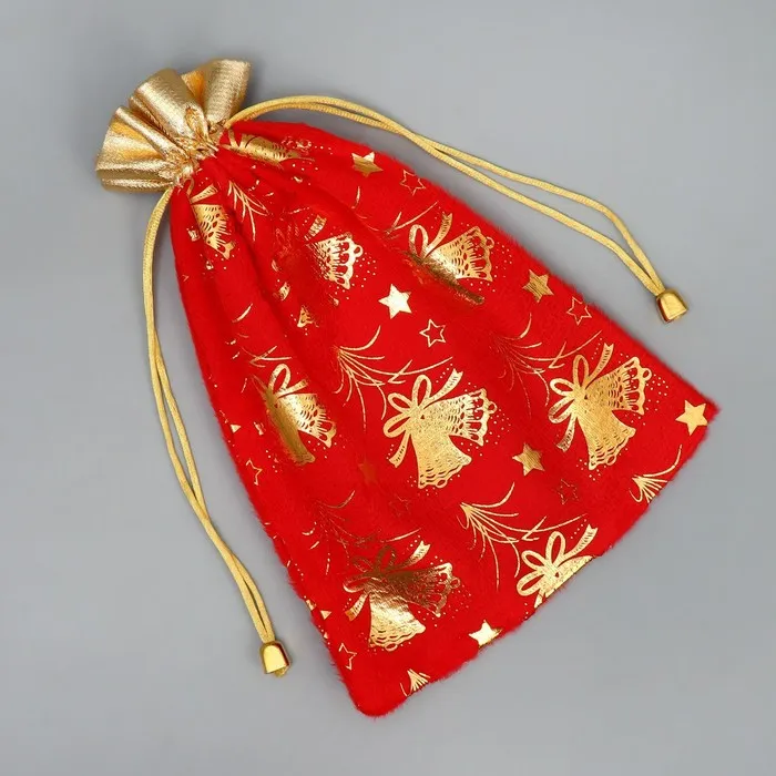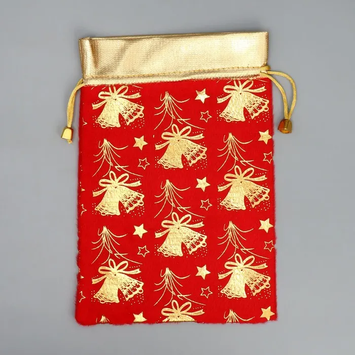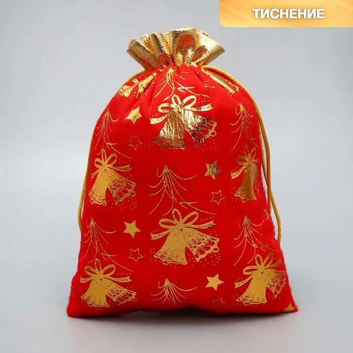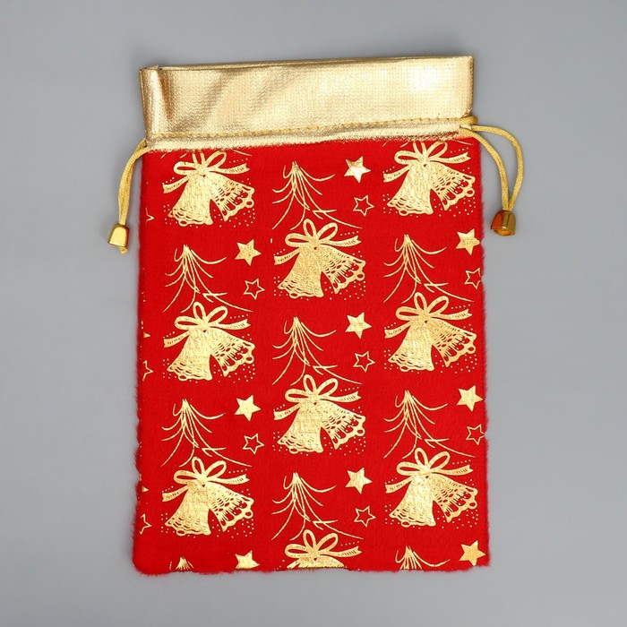 Мешочек подарочный плюш «Золотые фейерверки», колокольчики, тиснение, 16 х 24 см +/- 1.5 см — Характеристики