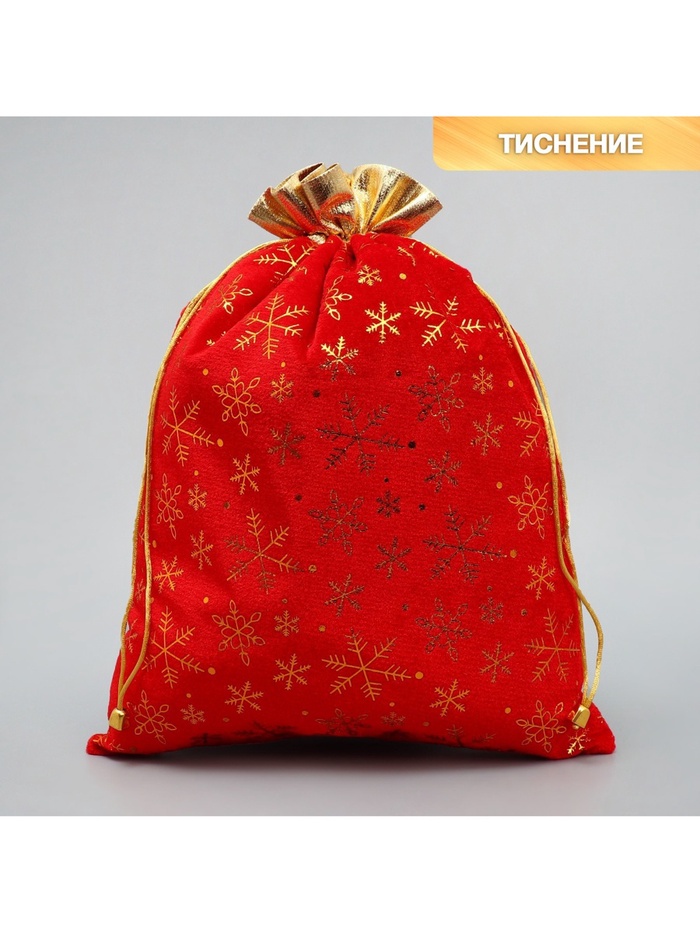 Мешочек подарочный «С лучшими пожеланиями», снежинки, тиснение, 30×40 см — Характеристики