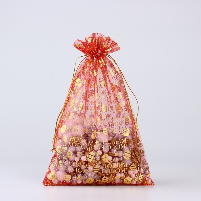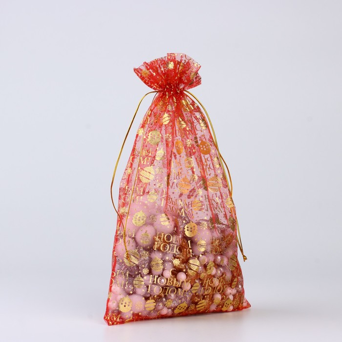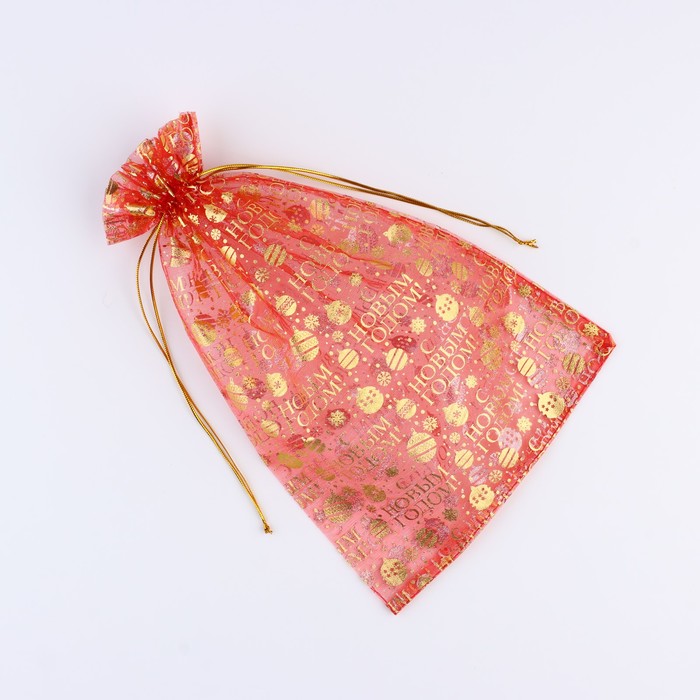 Мешочек подарочный «С Новым годом», органза, красный, 20 х 30 см