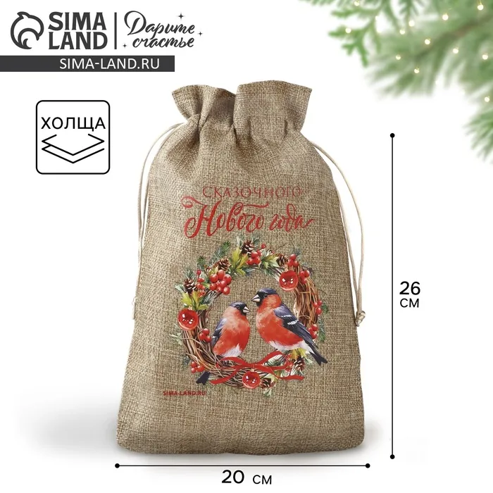 Мешочек подарочный с термонаклейкой «Новогодний венок», 20 х 30 см +/- 1.5 см — Характеристики