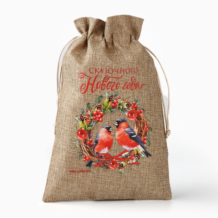 Мешочек подарочный с термонаклейкой «Новогодний венок», 20 х 30 см +/- 1.5 см — Характеристики