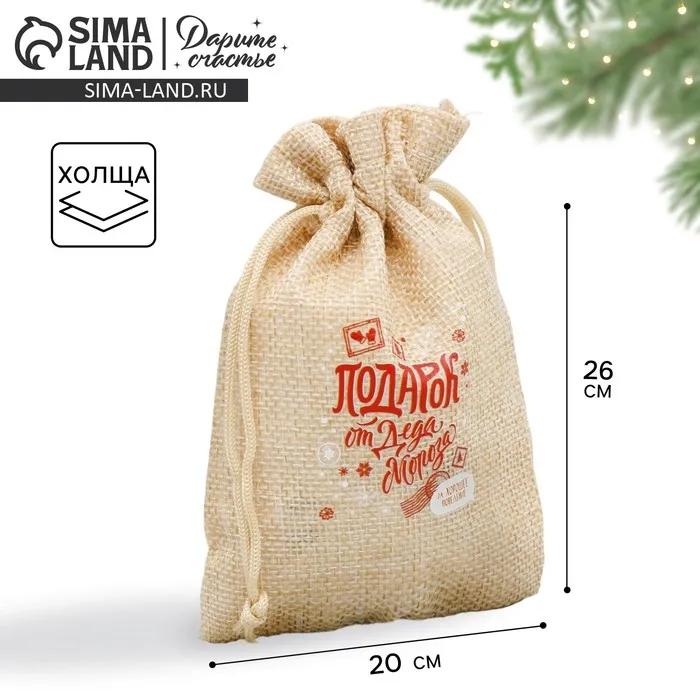 Мешочек подарочный с термонаклейкой «Подарок от Деда Мороза», 20 х 30 см +/- 1.5 см — Характеристики