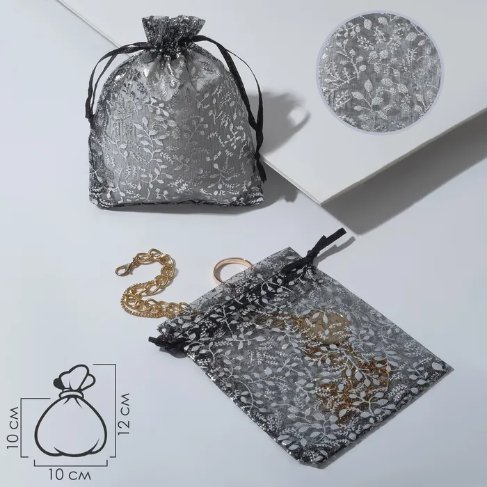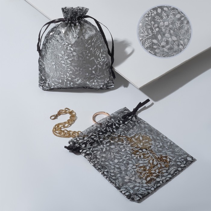Мешочек подарочный «Веточки» 10×12, цвет чёрный с серебром — Характеристики