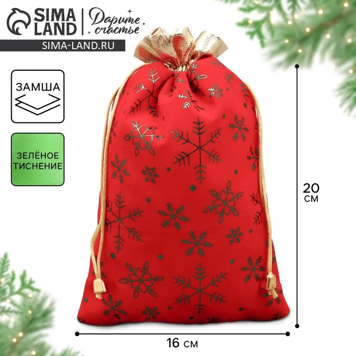 Мешочек подарочный замша «Тепла и Уюта», снежинки, тиснение, 16 х 24 см +/- 1.5 см — Характеристики