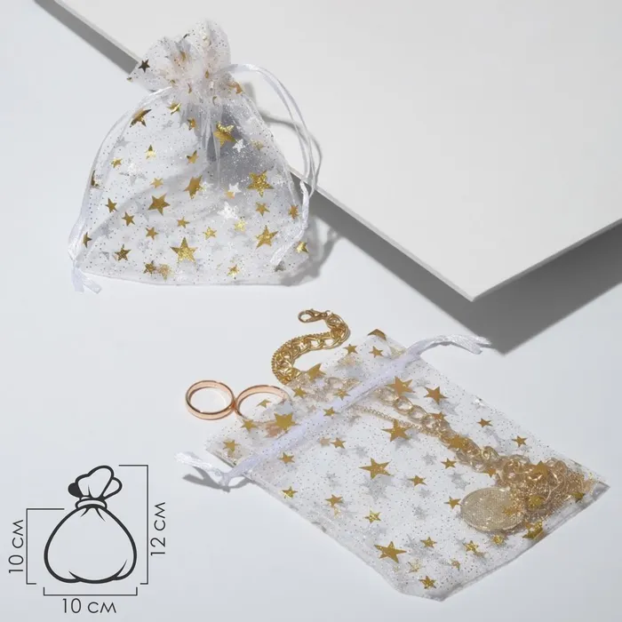 Мешочек подарочный «Звёздочки» маленькие, 10×12, цвет белый с золотом — Характеристики