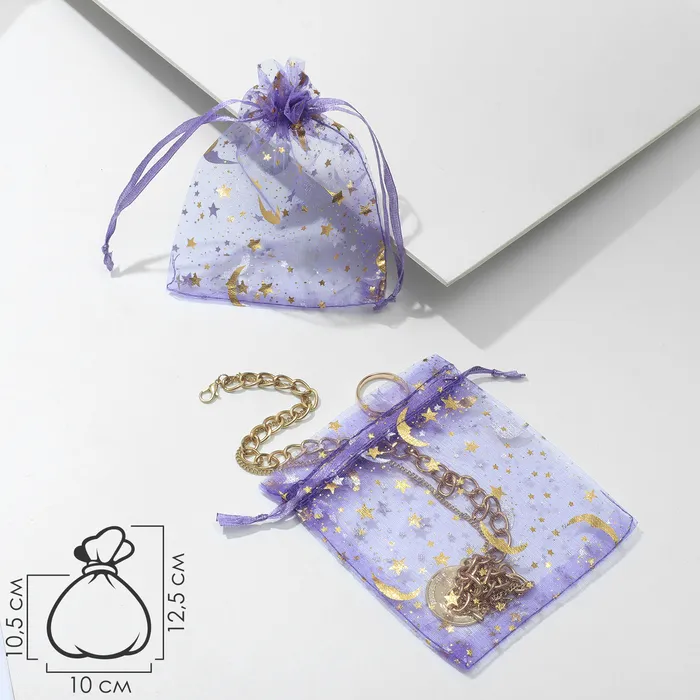 Мешочек подарочный «Звёзды с месяцем», 10×12,5, цвет фиолетовый с золотом — Характеристики