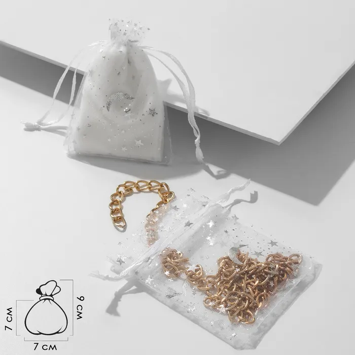 Мешочек подарочный «Звёзды с месяцем», 7×9, цвет белый с серебром — Характеристики