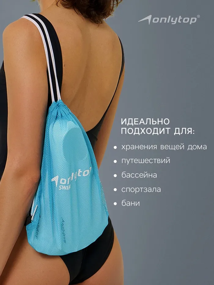 Мешок предназначен для хранения и транспортировки влажных вещей, таких как купальник, полотенце или тренировочный инвентарь. Подойдёт для бассейна, сауны или пляжа.