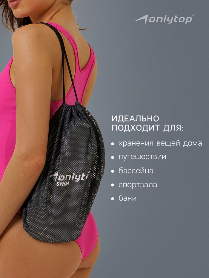 Мешок предназначен для хранения и транспортировки влажных вещей, таких как купальник, полотенце или тренировочный инвентарь. Подойдёт для бассейна, сауны или пляжа.
