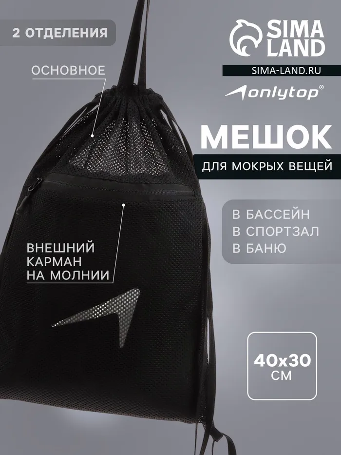 Мешок для мокрых вещей ONLYTOP, 40х30 см, цвет чёрный — Характеристики