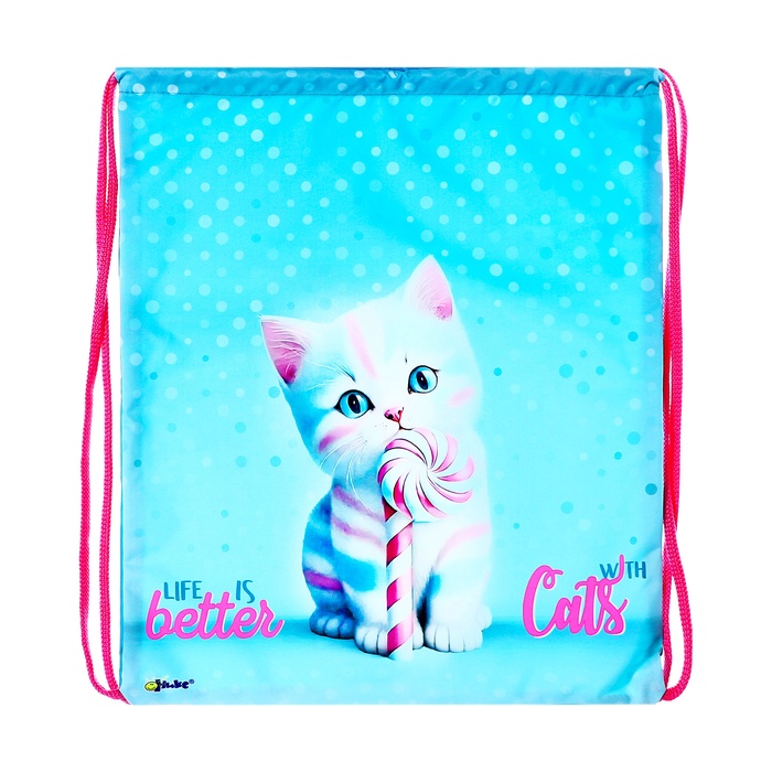 Мешок для обуви 490 х 410 мм, Оникс МО-27-1, "Котик Карамелька" — Характеристики