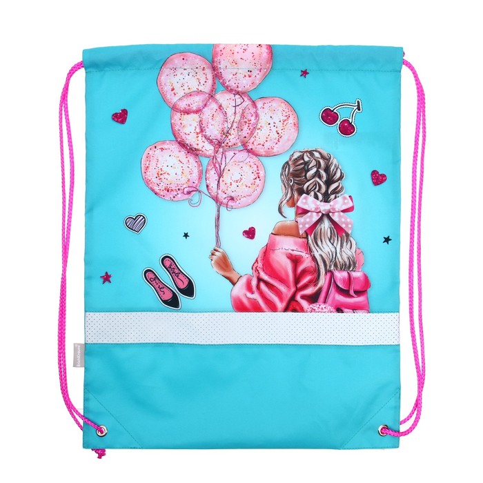 Мешок для обуви 500 х 410 мм Erich Krause, плотность 300D, со светоотражающей полосой, с вентиляцией, Girly Day — Характеристики