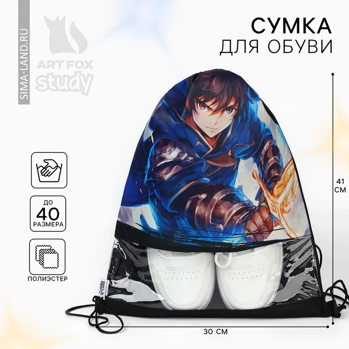 Мешок для обуви «Аниме воин» с прозрачным окном 41×30 см — Характеристики