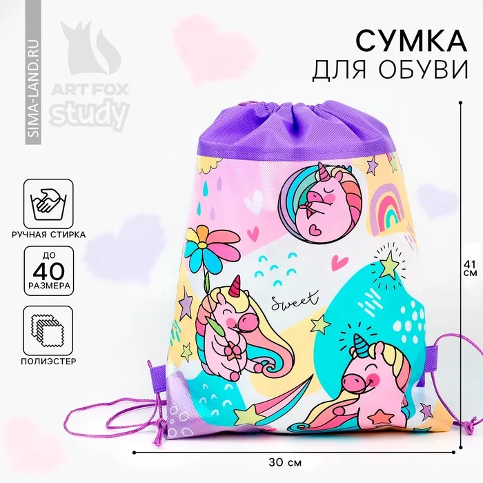Мешок для обуви «Единорог» полиэстер, размер 41×30 см — Характеристики