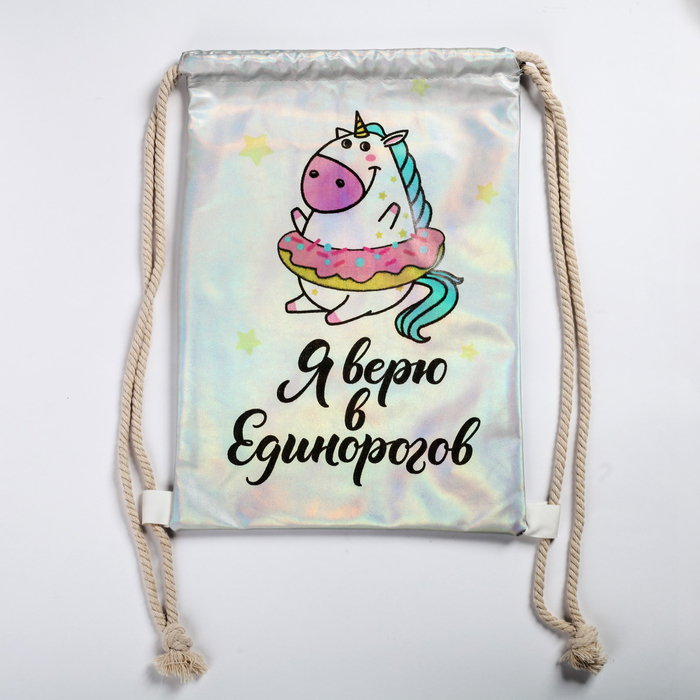 Мешок для обуви «Я верю в Единорогов», кож.зам голография, 26×37 см — Характеристики