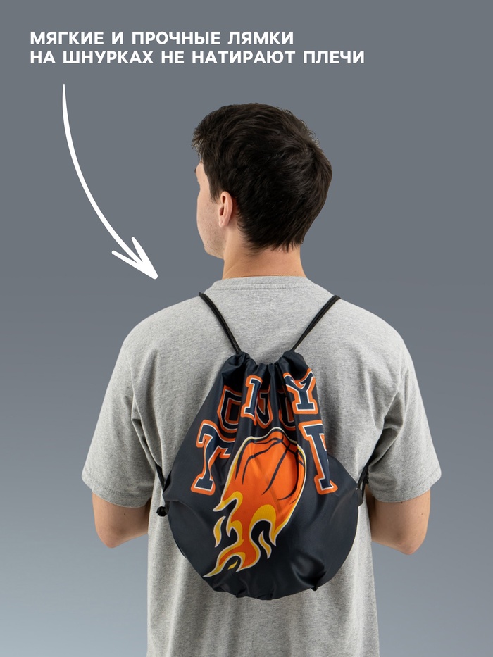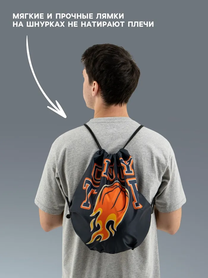 Он состоит из одного отделения и закрывается стягиванием шнурков. Лямки позволяют носить его в руках или на плече, а компактный размер обеспечивает лёгкость в переноске.