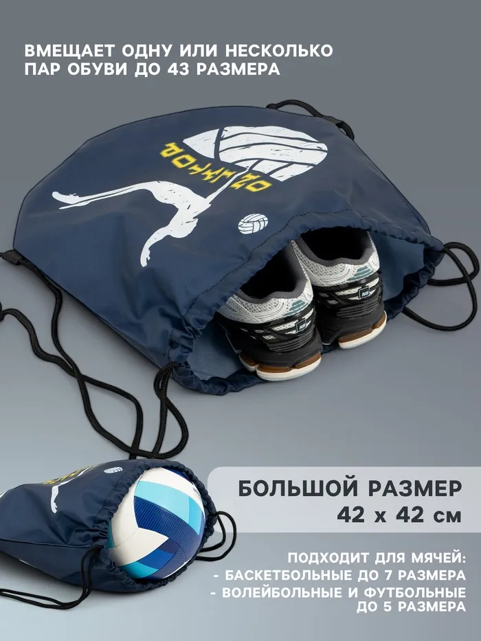 Мешок предназначен для хранения и транспортировки обуви или спортивного мяча.