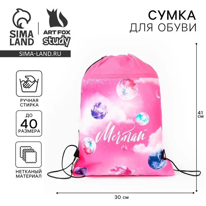 Мешок для обуви «Космос: Мечтай! Всё сбудется!» нетканое полотно, размер 41×30 см — Характеристики