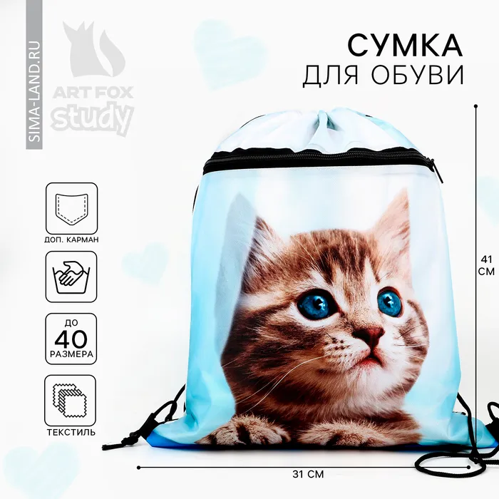 Мешок для обуви «Милый котик» 2 секции, 41×31 см — Характеристики