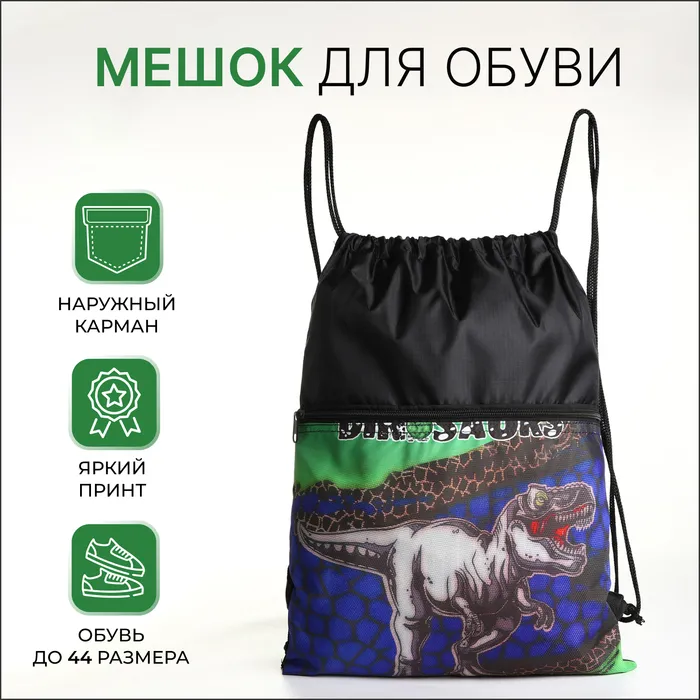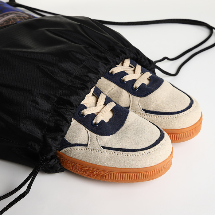 Мешок для обуви на шнурке, с карманом, принтом, размер 45×1×34 см, чёрный/серый — Характеристики