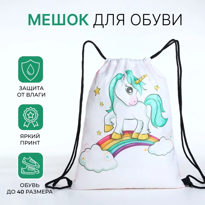 Мешок для обуви на шнурке, с принтом, размер 32×0.5×40 см, белый/разноцветный — Характеристики