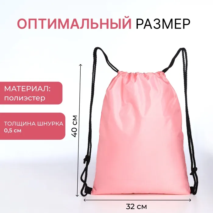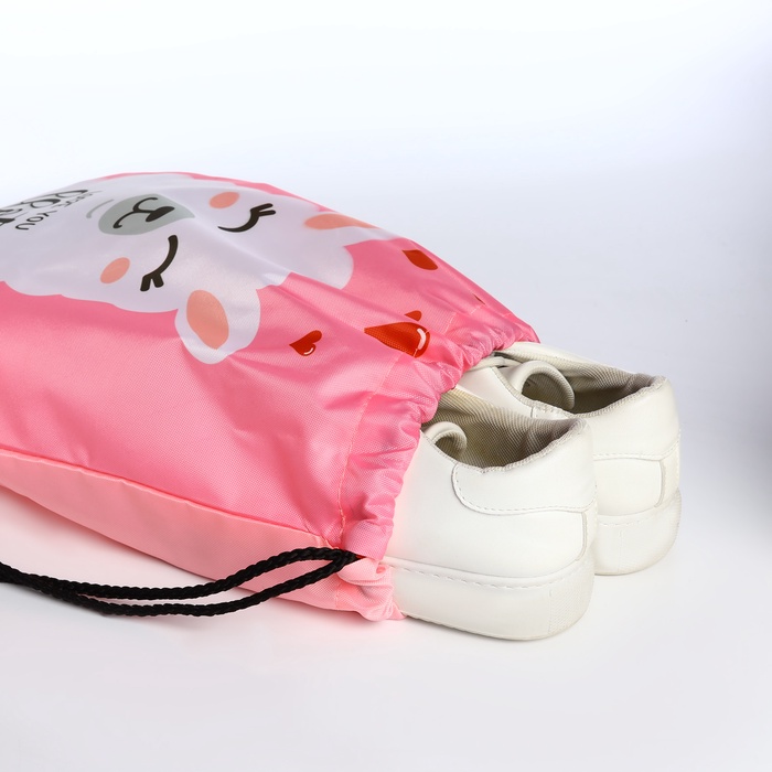 Мешок для обуви на шнурке, с принтом, размер 32×0.5×40 см, белый/розовый — Характеристики