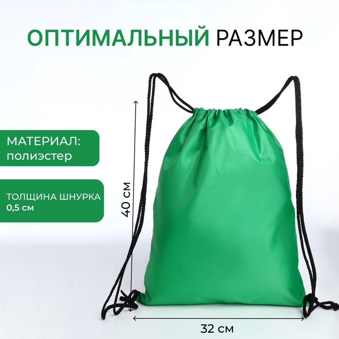 Мешок для обуви на шнурке, с принтом, размер 32×0.5×40 см, белый/зелёный — Характеристики
