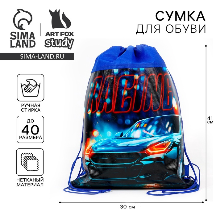 Мешок для обуви на шнурке, с принтом, размер 45×1×34 см, чёрный/белый/зелёный — Характеристики