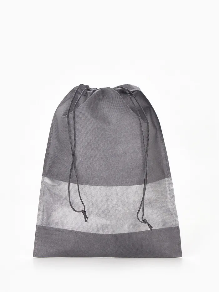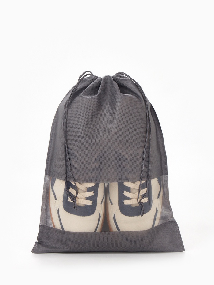 Мешок для обуви на шнурке, с прозрачной вставкой, однотонный, размер 27×0.5×36 см, серый — Характеристики