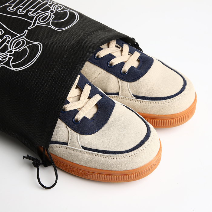 Мешок для обуви на шнурке, с прозрачной вставкой, принтом, размер 26.5×0.5×36 см, чёрный/белый — Характеристики