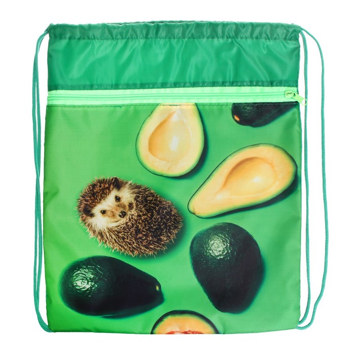 Мешок для обуви с карманом 420 х 340 мм, Calligrata МСО-7С, (мягкий полиэстер, плотность 210D), "Ежик с Авокадо зеленое" — Характеристики