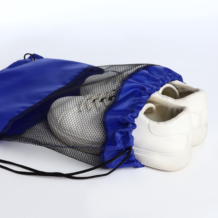 Мешок для обуви, с сеткой, на шнурке, синий — Характеристики