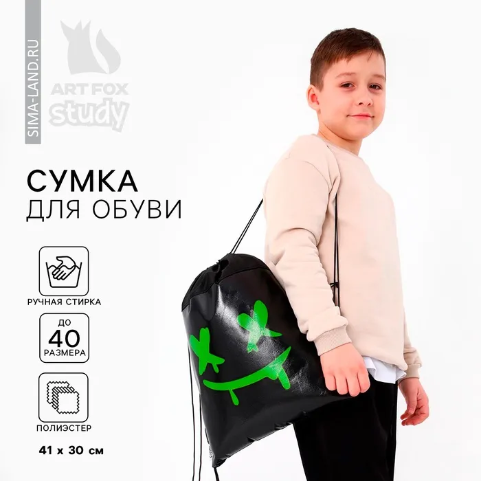 Мешок для обуви «Смайл» полиэстер, размер 41×30 см — Характеристики