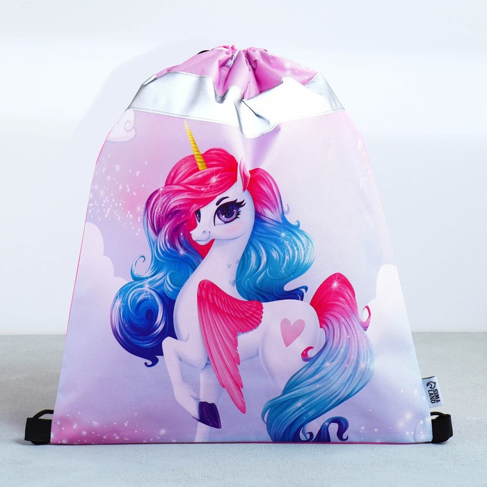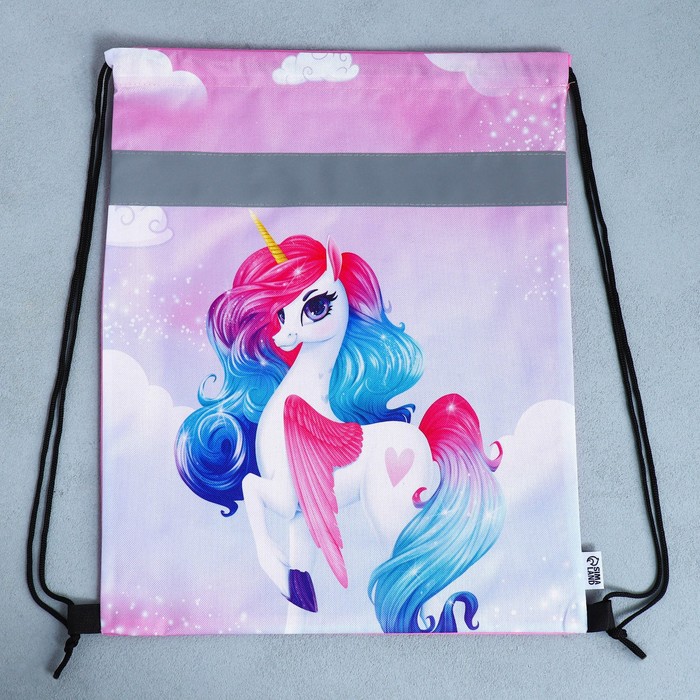 Мешок для обуви со светоотражающим элементом «Радужный единорог» 41×34 см — Характеристики