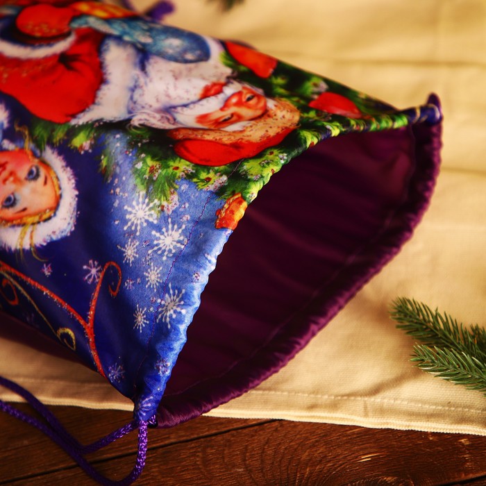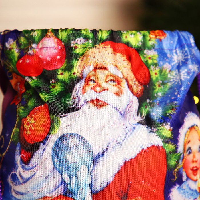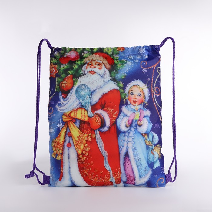 Мешок для подарков новогодний на шнурке «Дед Мороз и Снегурочка», цвет синий/разноцветный — Характеристики