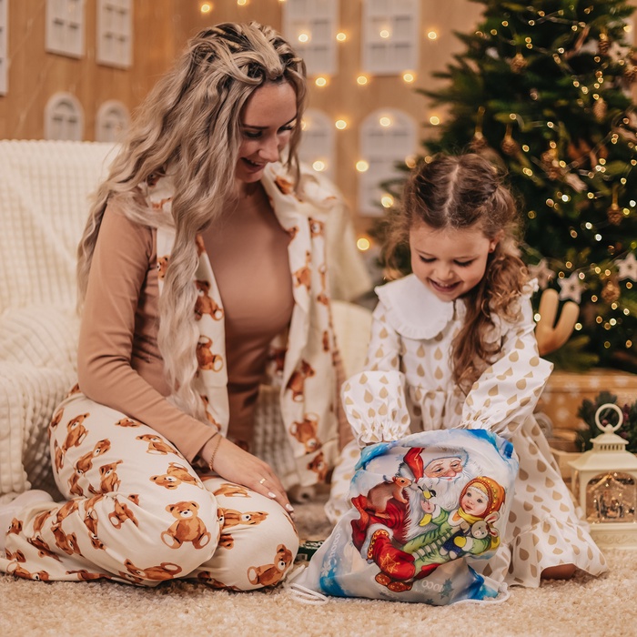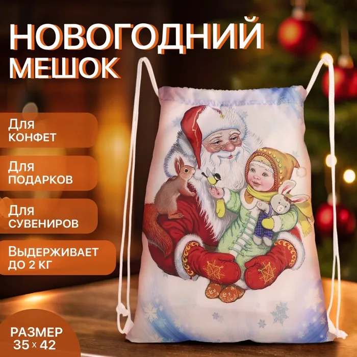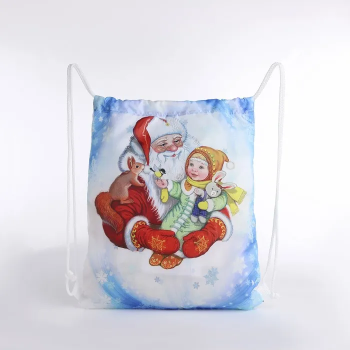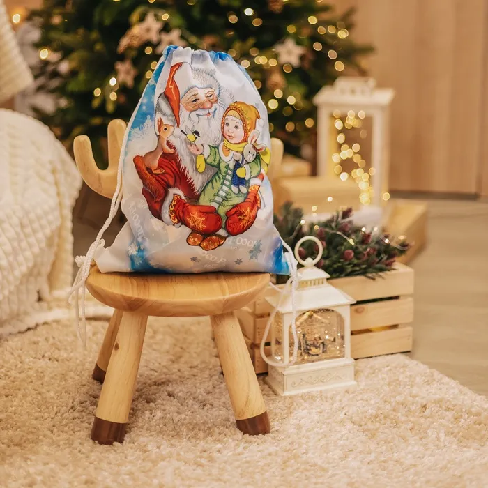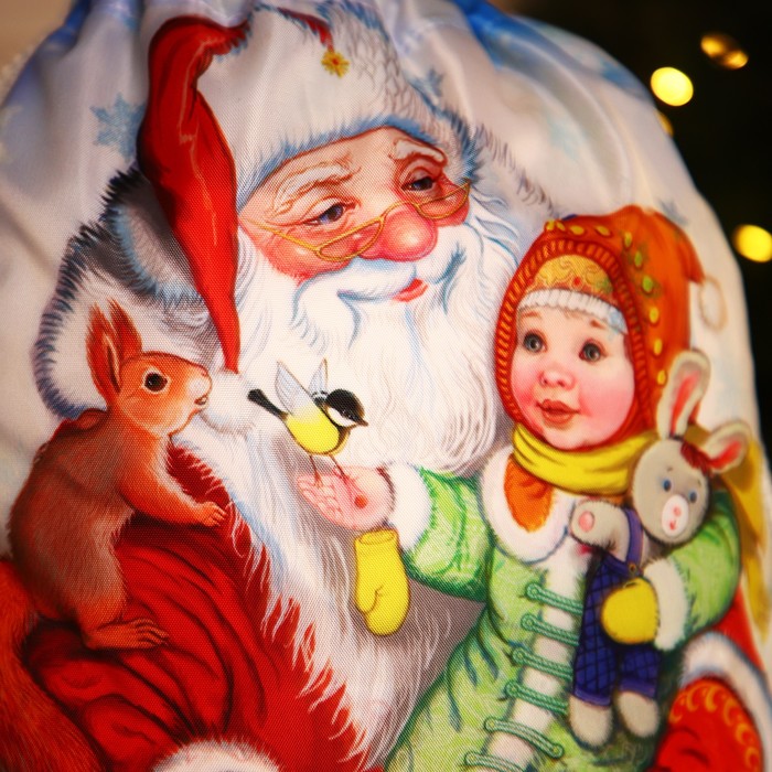 Мешок для подарков новогодний на шнурке «Дед Мороз», цвет белый/разноцветный — Характеристики