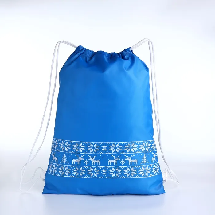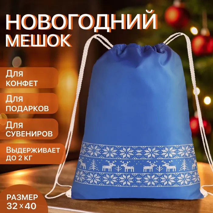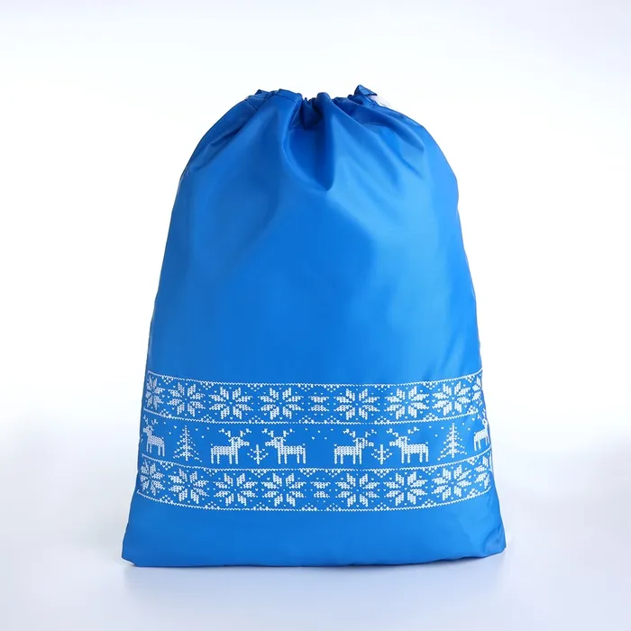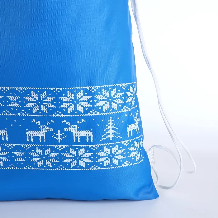 Мешок для подарков новогодний на шнурке "Олени", цвет голубой — Характеристики