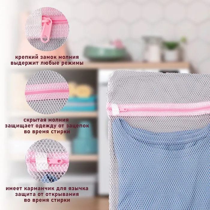 Мешок для стирки белья Доляна, 30×40 см, крупная сетка, белый — Характеристики