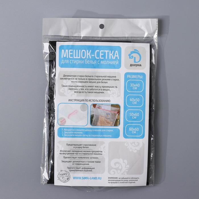 Мешок для стирки белья Доляна, 50×60 см, мелкая сетка, цвет МИКС — Характеристики