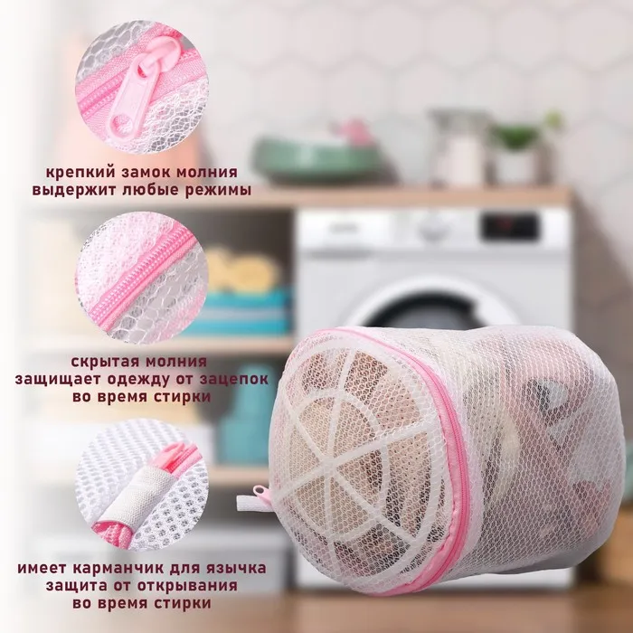 - незаменим при стирке вещей с завязками, крючками, кружевом или тесьмой;