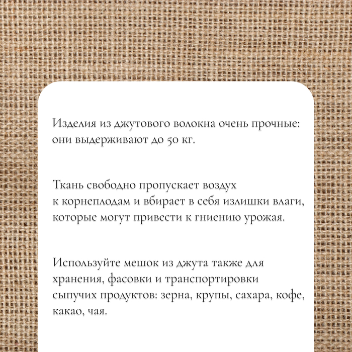 - Экологичный джут не навредит природе и здоровью человека.