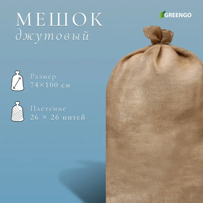 Мешок джутовый, 57×90 см, плотность 35×35 нитей, без завязок, Greengo — Характеристики