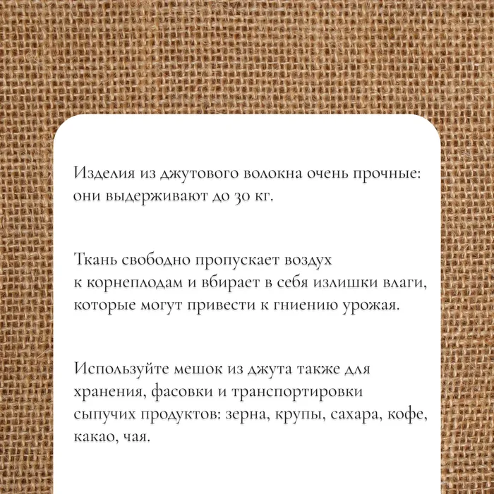 - Экологичный джут не навредит природе и здоровью человека.
