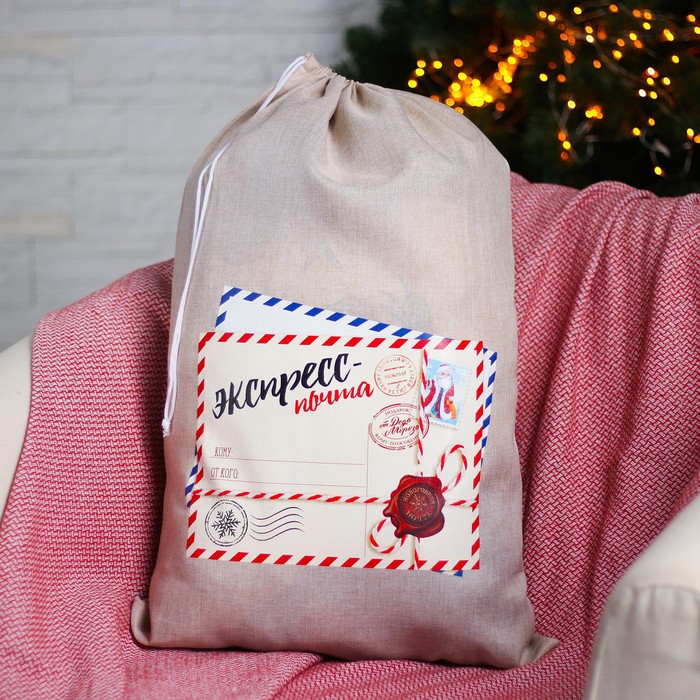 Мешок новогодний Деда Мороза «Экспресс-почта» холщовый, 40×60 см — Характеристики