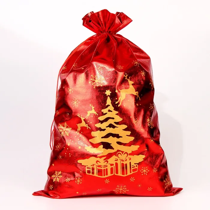 Мешок новогодний Деда Мороза «Елка с подарками», красный, 60 х 40см — Характеристики