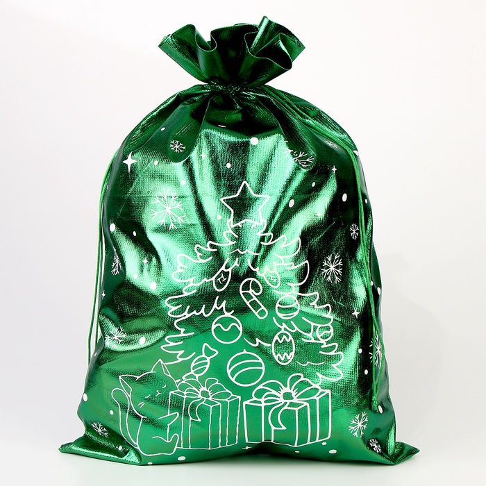 Мешок новогодний Деда Мороза «Елочка», зеленый, 60 х 40см — Характеристики